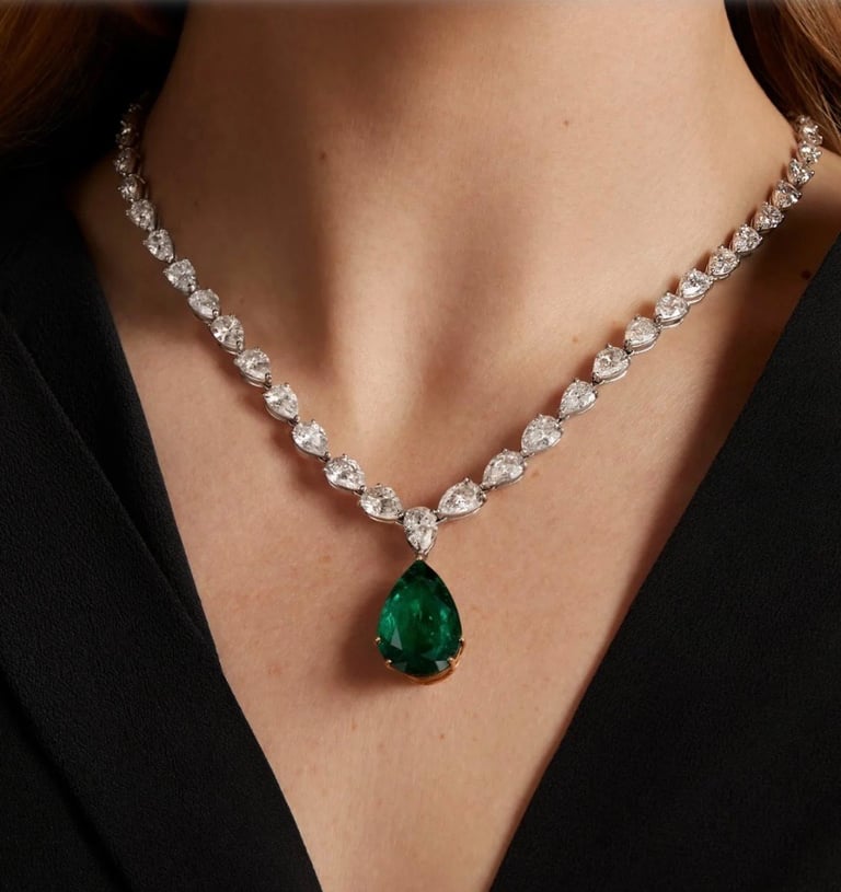 AN EMERALD AND DIAMOND NECKLACE
