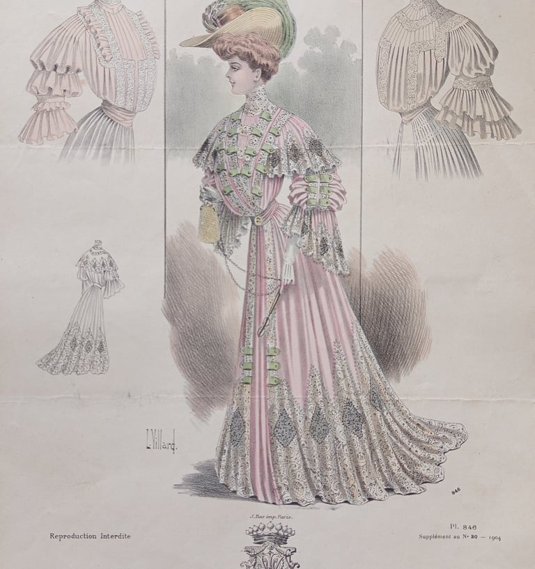 A SELECTION OF EDWARDIAN HAND COLOURED FASHION PRINTS c.1912.
