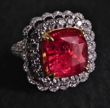 AN ALMOST FLAWLESS BRILLIANT CUT SOLITAIRE SURROUNDED BY SMALL DIAMONDS.
